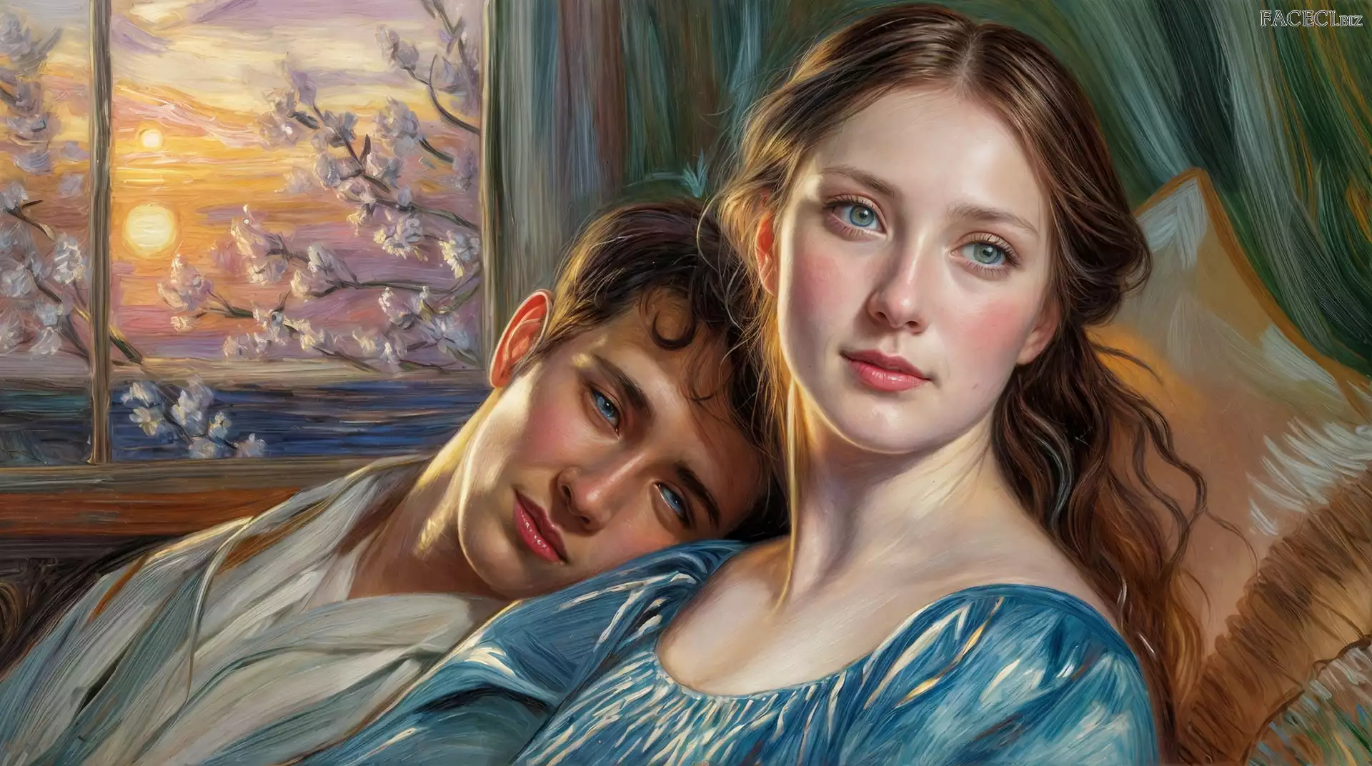 Drzewa, Okno, Grafika, Mężczyzna, Kobieta - faceci.biz